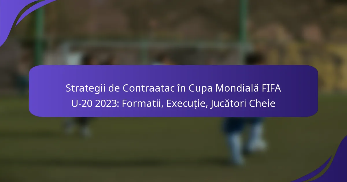 Strategiile de contraatac în Cupa Mondială FIFA U-20 2023 pun accent pe tranziții rapide de la apărare la atac, permițând echipelor să profite de slăbiciunile adversarilor. Folosind formații precum 4-3-3 și 3-5-2, echipele își pot maximiza potențialul ofensiv, asigurând în același timp stabilitatea defensivă. Jucătorii cheie joacă un rol crucial în executarea acestor strategii prin mișcări rapide, pase precise și poziționare strategică.