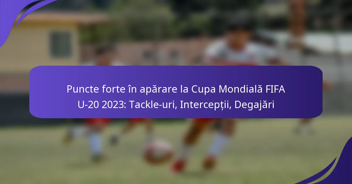 Apărătorii remarcabili din Cupa Mondială FIFA U-20 2023 au demonstrat abilități impresionante în tackle-uri, interceptări și degajări, având un impact semnificativ asupra capacităților defensive ale echipelor lor. Analizând aceste metrici, se dezvăluie modul în care performanțele individuale contribuie la succesul general al echipei în turneu.