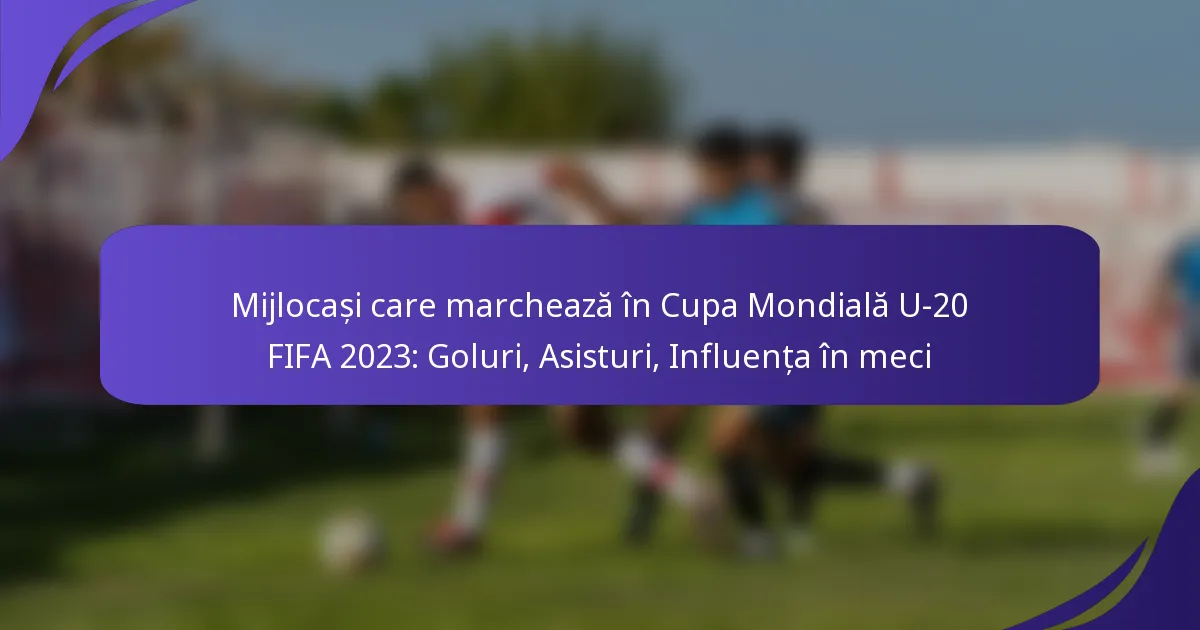 Campionatul Mondial FIFA U-20 2023 a evidențiat contribuțiile esențiale ale mijlocașilor care marchează, care au avut un impact semnificativ asupra echipelor lor atât prin goluri, cât și prin pase decisive. Acești jucători nu doar că au găsit drumul spre poartă, dar au facilitat și oportunități de a marca, demonstrând rolul lor esențial în dinamica generală a meciurilor. Performanțele lor au fost marcate de statistici impresionante, reflectând influența lor asupra rezultatelor turneului.