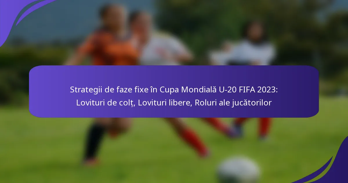 Strategiile de fază fixă în Cupa Mondială FIFA U-20 2023 sunt cruciale pentru crearea oportunităților de a marca și influențarea rezultatelor meciurilor. Echipele folosesc diverse tactici pentru loviturile de colț și loviturile libere, concentrându-se pe rolurile jucătorilor și formațiile pentru a maximiza eficiența acestora.